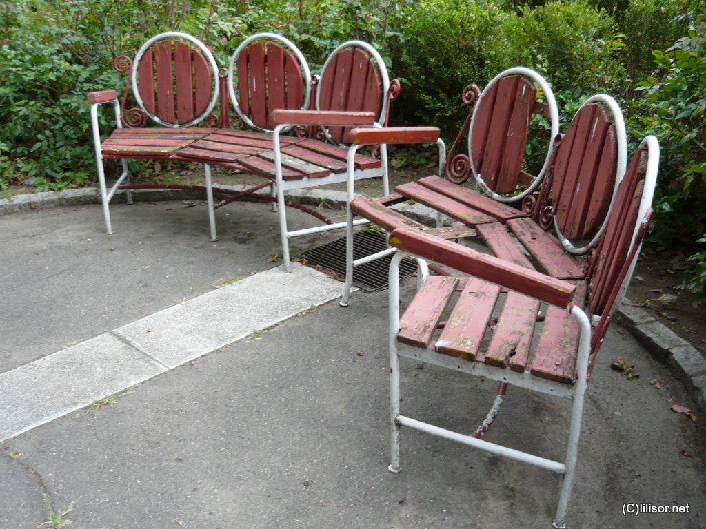 Băncile îşi arată vârsta, zici că n-au fost vopsite de câteva secole.