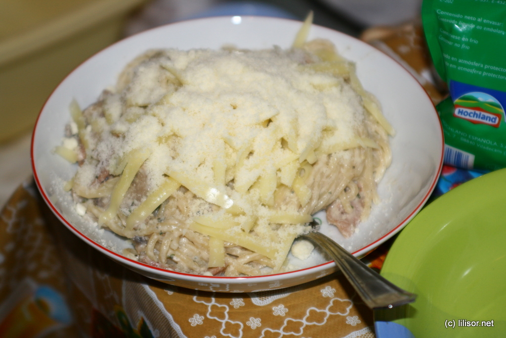 Dacă până acum am gătit de sute de ori spaghete cu sos de roșii (bolognese cred că se numesc), recent le-am încercat și pe cele cu sos alb (carbonara?). Rețeta de spaghete cu sos alb am găsit-o pe forumul Culinar, însă n-am ținut cont de ideea tizului meu ci de sfatul lui Crismod.