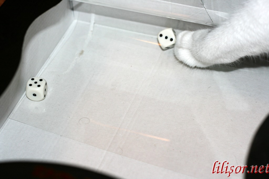 Fiecare participant corespondea unei cifre, iar primul zar scos din cutie care arăta cifra corespondentă unui participant, câştiga. A mers doar pentru primul câştigător, juriul era somnoros. Apoi am adoptat tactica: primul zar pe care se năpusteÅŸte pisica, ăla e! E tot un fel de random.org, dar mai animalic…