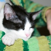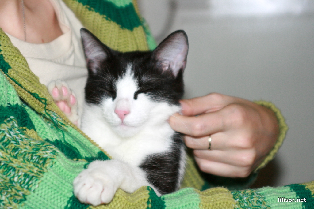Apoi îmi afişa cea mai drăguţă mutră pisicească, făcea ochii mari şi plângăcioşi. Evident, că io, sucker, o lăsam să se cuibărească-n bluza mea. După nici 2 minute Ţiţic sforăia mai ceva ca o purcică. La urechile mele, pentru că are obiceiul să doarmă ţinând capul pe gâtul sau pieptul meu.