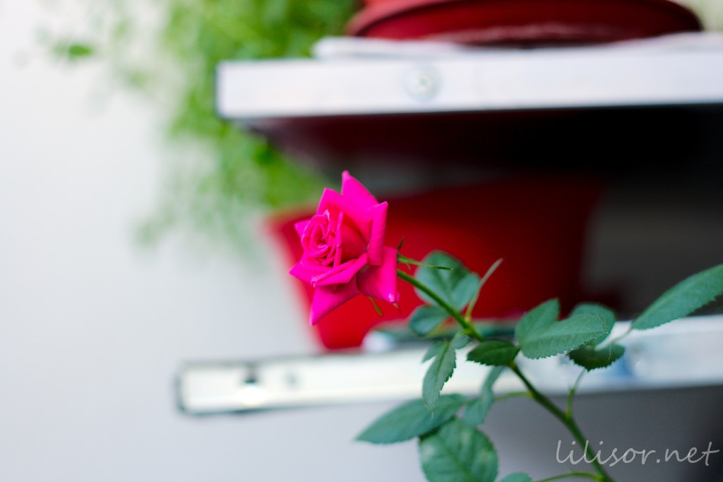 Dar pentru că am promis unor prieteni că le voi arăta trandafirul înflorit, m-am străduit să fac 2-3 poze cât mai acceptabile. Cât să nu irite prea tare privirile…